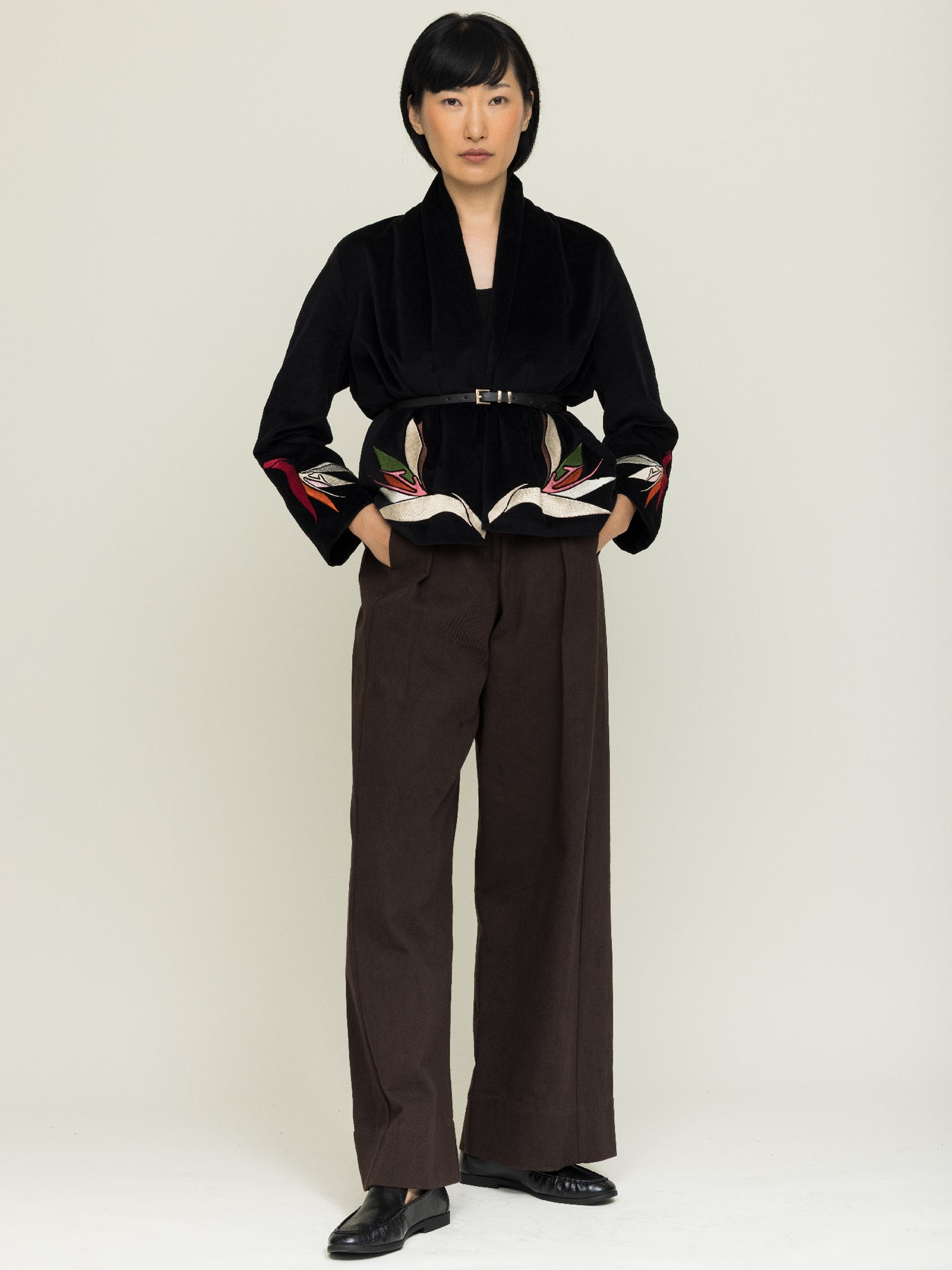 Jane Jacket Cotton Velvet Black Embroidered